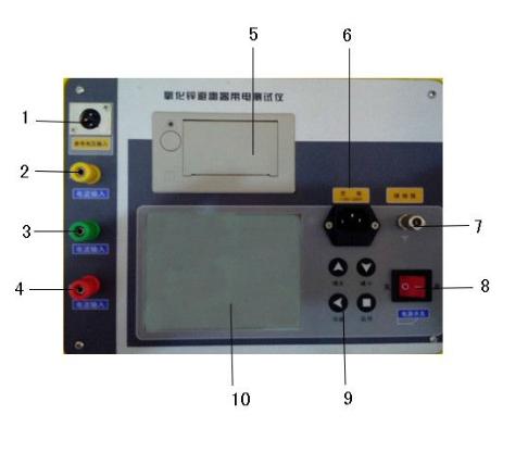 4---C相泄漏電流輸入端; 5---微型打印機(jī);          6---充電插座;